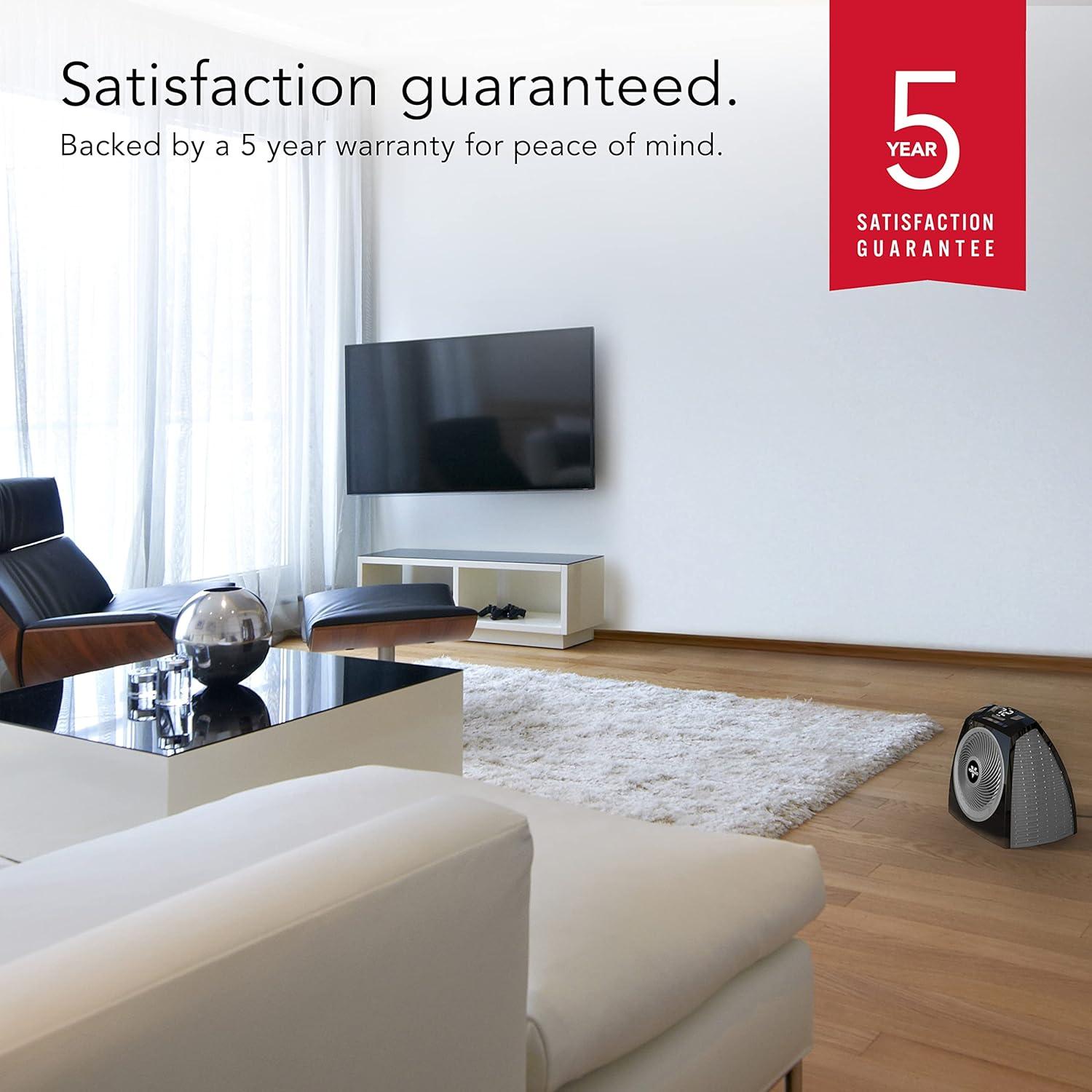 The VH10 is part of Vornado’s next generation of Whole Room Heaters, delivering powerful performance with modern style. Its sleek, minimal design complements any room while hinting at the advanced engineering within. The VH10 is designed to evenly distribute heat using Vornado’s signature Vortex Action — a specially tuned airflow system that creates a twisting current of air. This continuous circulation moves warm air throughout the entire room, eliminating hot and cold spots and providing a consistent, balanced environment. Unlike traditional portable space heaters that simply blow air in one direction, the VH10 harnesses walls and ceilings to circulate warmth more effectively. It’s an ideal heater for bedrooms, home offices, living rooms, and other indoor spaces that require reliable and efficient heat. Whether you’re using it as a quiet heater for a workspace or to add supplemental warmth in your favorite lounging area, the VH10 adapts with ease. Featuring simple-to-use top-mounted controls, the VH10 allows you to select between two quiet heat settings, as well as adjust the power level between Low and High for customizable comfort. The cool-touch exterior remains safe to the touch even after extended use, making it a great option for homes with pets or children. Integrated safety features such as overheat protection and a tip-over switch ensure peace of mind during use. Perfect for energy-efficient zone heating, the VH10 helps reduce your whole-home heating costs by keeping the spaces you use most warm and cozy—allowing you to turn down the central thermostat without sacrificing comfort. Backed by Vornado’s reputation for quality and innovation, the VH10 is built for long-lasting performance season after season.